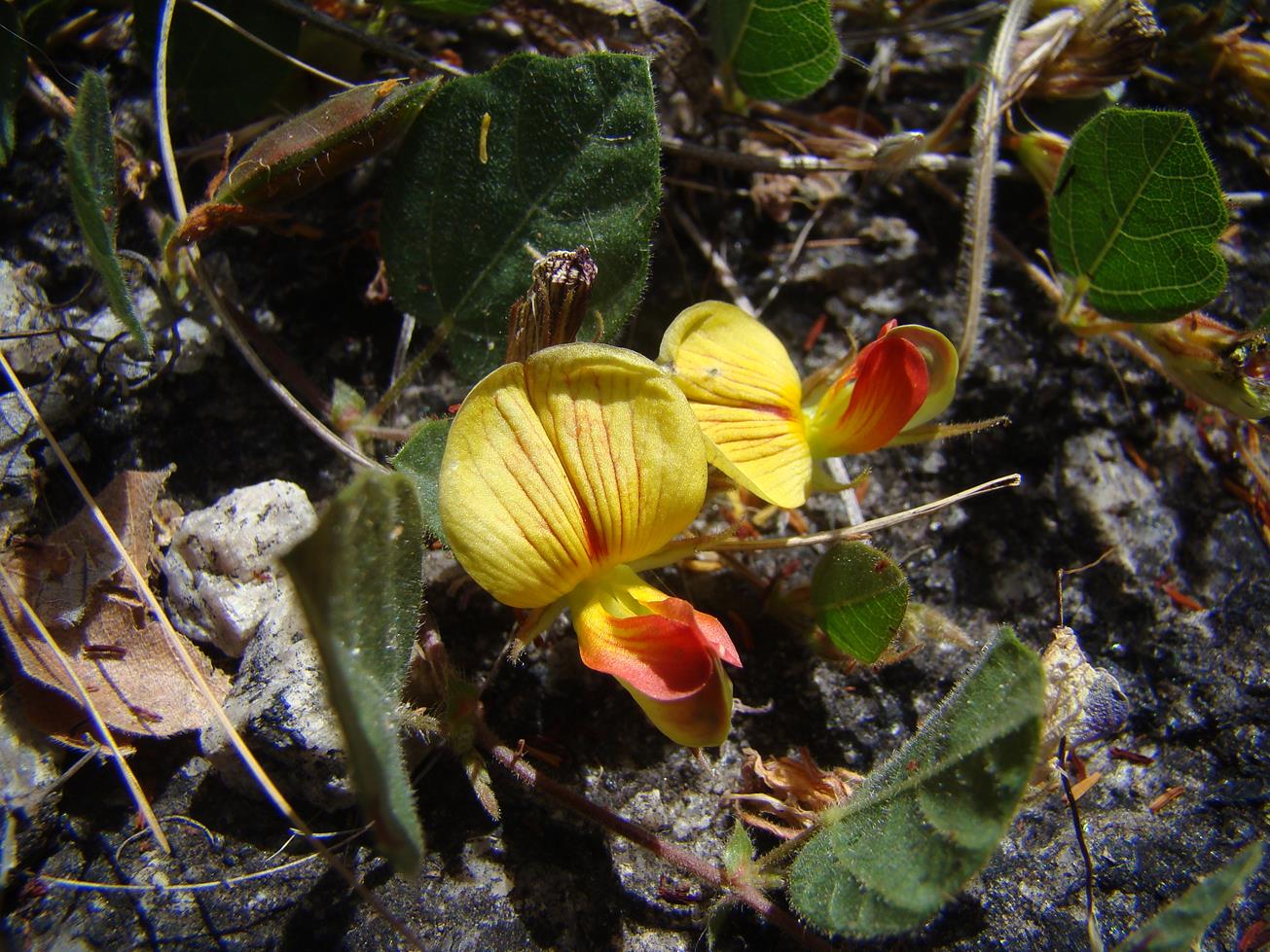 | Notes: | Herb, lax stems >1m long, single leaflets along Herb, ground cover; flowers: standard pale yellow with dark red lines, wings red fading to yellow base; fruit: length twice width, flattened, beaked, purplish looped veins. First record for MWA |