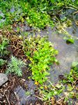 Photo: Limnobium laevigatum in a slightly more advanced state; the leaves are starting to become more upright with longer petioles and the plants are starting to clump together (Lake Chivero, December 2009). Note three early-stage leaves down at the bottom along with early stage E. crassipes (bottom right) and some more advanced plants at the top.