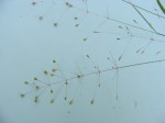Loosely tufted annual; culms up to 100 cm tall, erect, often branched below; leaf sheaths chartaceous, glabrous on the back, pilose near the margins, slightly compressed; leaf laminas 5–30 cm × 2–6 mm, flat or involute, sparsely pilose above, glabrous beneath, not pectinate-ciliate on the margins, attenuate at the apex. Panicle 4–22 cm long, narrowly elliptic; with branches in a succession of whorls, scaberulous, eglandular, the spikelets 1–4 per branch (but 0–2 on those of the lowermost whorl), evenly distributed in the distal part.Spikelets 2–2.7 mm long, pallid with purple tinge below; inferior glume 1/3–2/5 the length of the spikelet, rarely minute, narrowly ovate, nerveless, glabrous, obtuse to subacute at the apex; superior glume as long as the spikelet, ovate, 1-nerved, glabrous, acute at the apex; lemma a little shorter than the spikelet, elliptic-ovate; anthers 3, 1.2–1.5 mm long. Grain rotund or subrotund. |