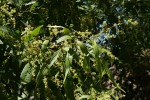 Spreading shrub or small tree up to 8·5 m tall, with rough greyish bark; branchlets, greyish or brownish, lenticellate. Leaves 3-foliolate with leaflets sessile, linear-lanceolate or oblong-lanceolate, hairless or sometimes hairy mainly on the midrib, dull green above, paler beneath; median leaflet 4–13 cm long, lateral ones about 1/3–2/3 smaller; margin slightly revolute, entire or shallowly crenate-dentate; petiole 1·5–5 cm long, slender, hairless or sometimes hairy, slightly grooved. Inflorescences axillary and terminal, nearly as long as the leaves or terminal ones slightly longer, lax. Flowers unisexual in the same inflorescence, pale yellow, very small. Fruit a yellow-brown to cinnamon-brown drupe, shining, 4–5 mm in diameter, depressed-globose or diamond-shaped, slightly asymmetric, smooth, hairless. |