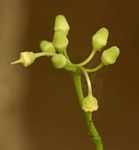 Robust climber. Stems woody when older, not winged, with forked tendrils, gum-like latex present. Leaves simple, broadly ovate, up to c. 10 cm long, hairless; margin entire to obscurely dentate. Flowers in leaf-opposed, branched inflorescences, small, yellowish green. Fruit ellipsoid, c. 2 × 1 cm, hairless, red when ripe. |