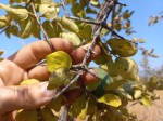Small deciduous tree with deeply ridged corky bark and branches are armed with strong curved spines. Fruits edible and very tasty. (Similar to Strychnos spinosa) |