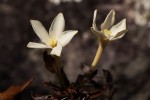 A prostrate species, which may form extensive carpets. Leaves oblong-elliptic to somewhat oblanceolate, more or less densely pubescent beneath. Flowers solitary or in few-flowered terminal and subterminal clusters, fragrant. Corolla white; tube 2.5-6.5 cm long, densely pubescent on the outside; lobes spreading, up to 4 cm long. Fruit ellipsoid, orange when ripe, crowned with the long linear calyx lobes. |