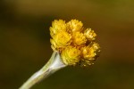 Erect perennial herb, up to c. 40 cm tall, growing from a woody rootstock. Stems 1-several, mostly simple, with appressed hairs. Basal leaves usually shrivelled at time of flowering, when present sessile lanceolate to oblanceolate-oblong, up to 40 cm long, grey woolly. Leaves along the stem up to 6 × 1 cm, narrowly oblong-lanceolate, decreasing in size upwards, grey woolly, particularly below. Capitula forming a dense corymbose head, up to 9 cm in diameter. Involucral bracts glossy bright yellow or straw-coloured, often brown-tipped, rarely purple-brown, c. 6-seriate, up to 6 mm long, ovate. Florets yellow. |