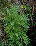 Much-branched shrubby herb, up to 1.5 m tall. Stems and branches shortly hairy, somewhat brittle. Leaves alternate, sessile, 3-8 cm long, 2-pinnatifid with 4-5 primary lobes on each side, green above, paler beneath, shortly hairy on both surfaces; base running down, auriculate with small dentate ears. Capitula 3-10 forming a lax terminal inflorescence. Involucral bracts 13-21, 1-seriate, linear-lanceolate, 4-5.5 mm long, green with membranous margins. Florets yellow; rays (5)-8; disk-florets 40-60. Pappus with numerous bristles, erect, 3-4 mm long, white with minute hooks. |